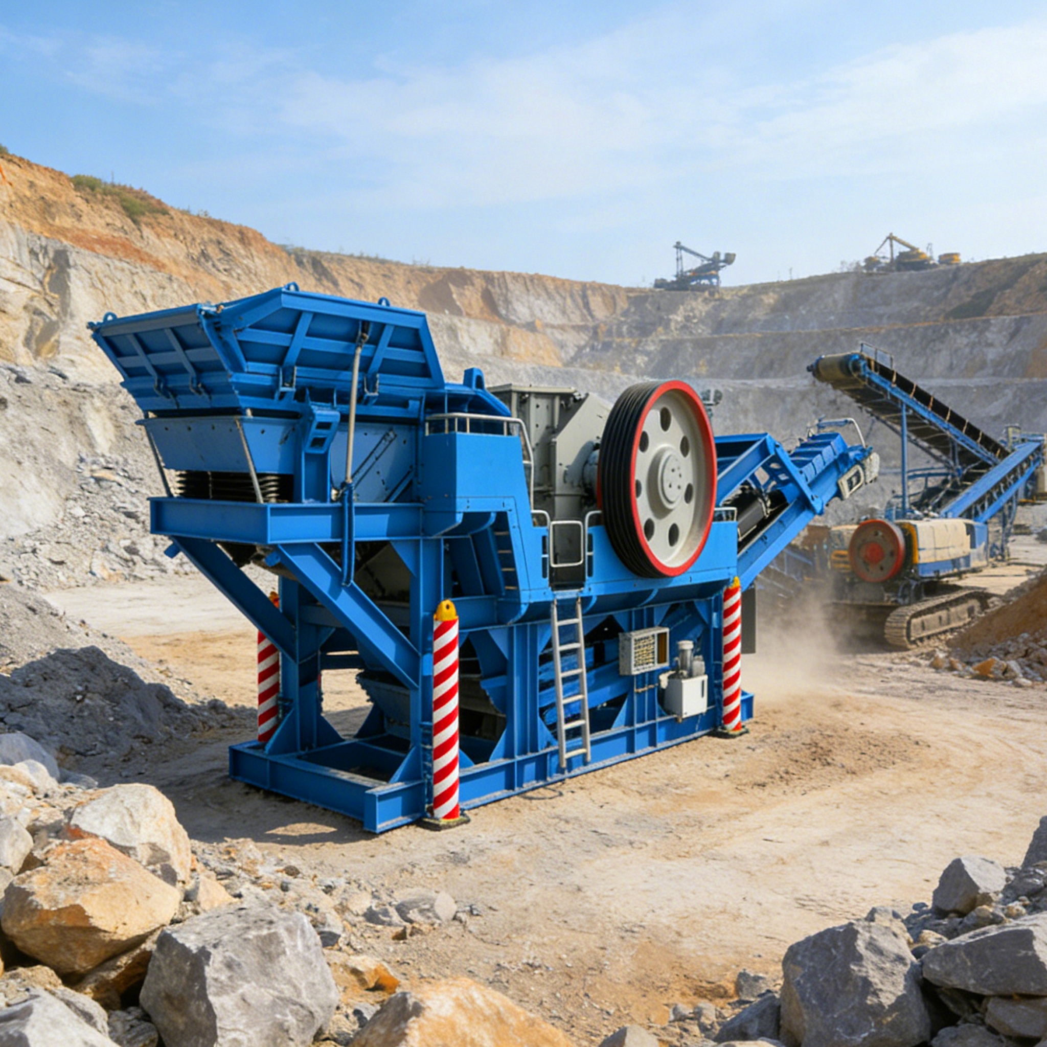 ○ Все критически важные компоненты, в том числе сверхмощный бункер, линейный вибрационный питатель, щековая дробилка C113, главный ленточный конвейер и магнитный сепаратор, предварительно установлены и подключены на единой раме из конструкционной стали. Это исключает сборку на месте, снижает требования к фундаменту на 60% и позволяет полностью развернуть систему в течение 24 часов после прибытия на место.
